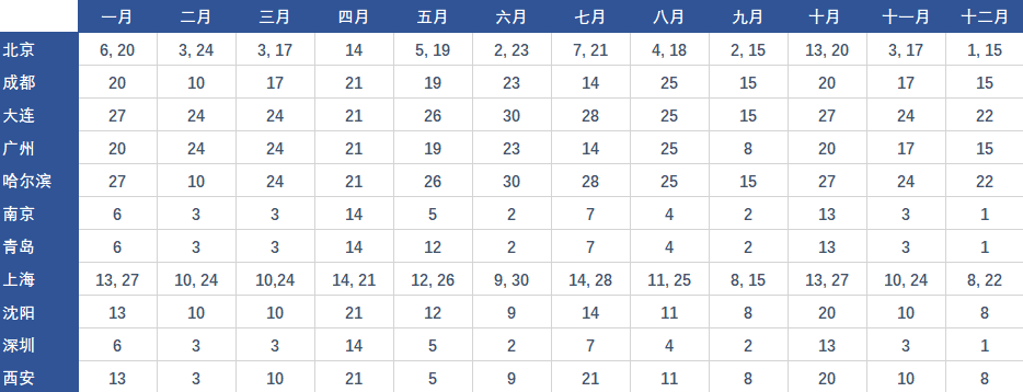 其中,除北京和上海外,其他各大城市每月皆只有一次考试安排。需要注意的是,不是所有二线城市都有考点哦。有需要的学生和家长可以考虑前往附近其他城市报名参加考试。