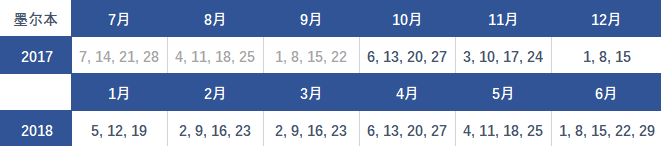 (注:所有时间表仅供参考,如有更改请以官网公布最新时间表为准。地址: